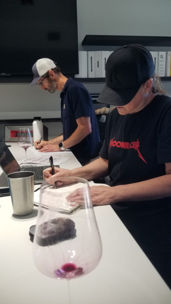With the next sample, Cooney says a wine is “a little reductive, but there’s fruit on the mid- palate. It needs more time.”