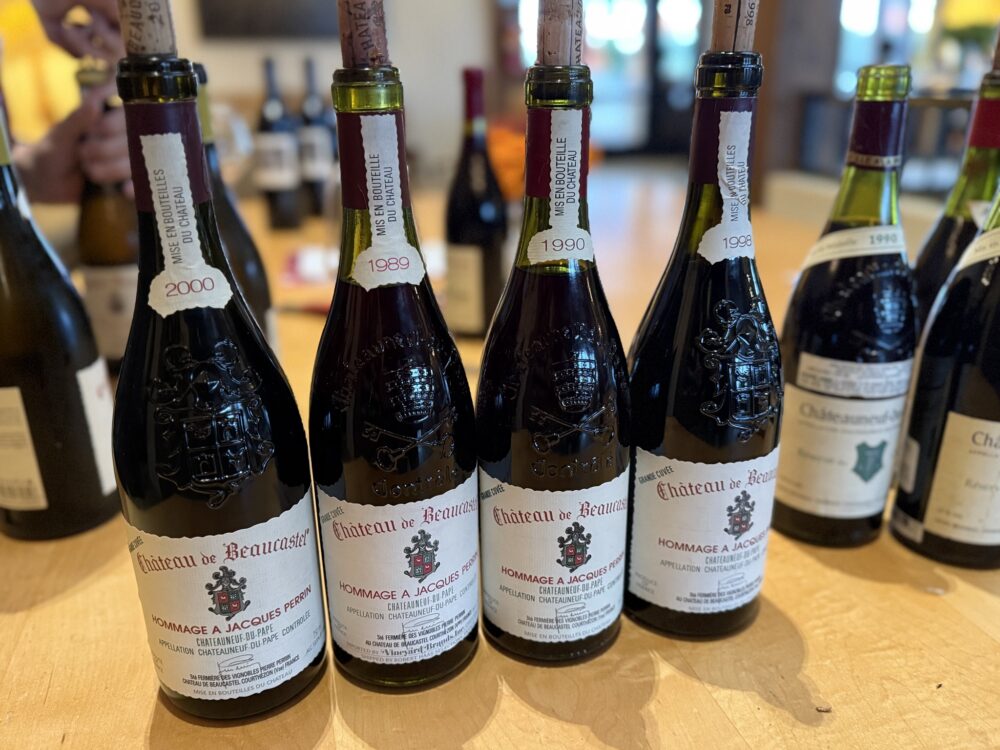 Moving to the Rhônes, the standouts come from an evening supporting the Boys and Girls Club in Napa, which featured an auction lot that was something else entirely. It’s not often you get to taste 1989 and 1990 Rayas side by side, let alone next to the same vintages of Bonneau’s Réserve des Célestins, as well as a lights-out flight of Beaucastel’s Châteauneuf du Pape Hommage à Jacques Périn (and their Roussanne Vieilles Vignes). If there’s a Vinous heaven out there, this was it. In addition, there are some great Northern Rhônes in there from Jaboulet and Chapoutier.